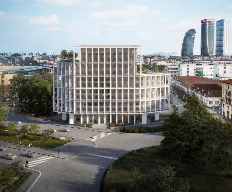 Overlooking Piazzale Zavattari in Milan, between San Siro and City Life area, Ivory is the result of the renovation of a 1950s building, once part of the Isotta Fraschini car factory. The project aims to enhance the building’s verticality by recovering some architectural elements of the original structure, which is maintained, lightened and enlarged thanks to the integration of a second grid of pillars. This solution includes large balconies and terraces that serve as open-air extensions of the offices. This double skin gives the building a contemporary aesthetic, with large windows set between metal elements and vertical lines that slender the entire structure. The different heights of the façade and the alternating loggias give movement and dynamism to the volume. The open-air areas, culminating in the two large green terraces on the 8th and 10th floors, are high-quality spaces available to people, which generate a dialogue with the urban context, thanks to privileged views of the city.