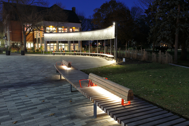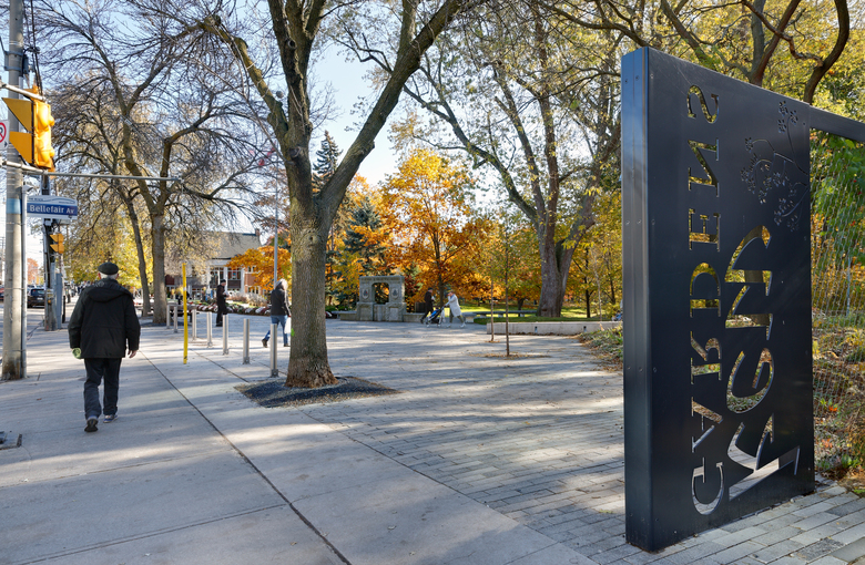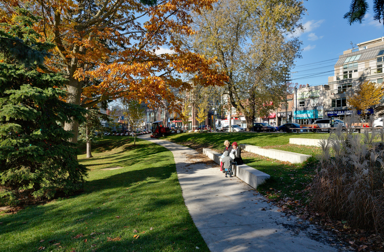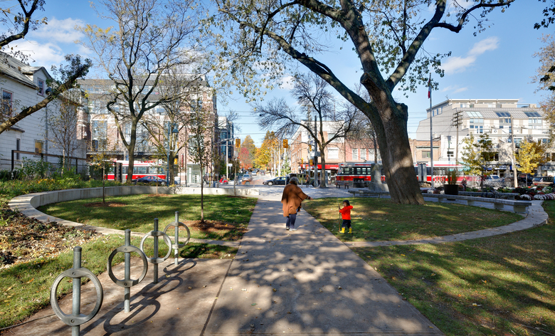 Over the decades following Kew’s founding, Queen Street at the park’s northern edge became one of Toronto’s most important east-west commercial streets. Although the park interior is much used, the street met the park edge abruptly. The City of Toronto and the local BIA commissioned this project to create a new streetscape frontage. Part park, part plaza, the Kew Gardens Streetscape negotiates the tricky transition between retail frontages and the park’s bucolic landscape. This new threshold cohesively intertwines new and existing elements and provides better accessibility to the park. The park’s northern edge now promotes public use, improves pedestrian safety, strengthens view corridors, ensures flexible programming for community events, and evokes and enhances the character of Kew Gardens and the surrounding Beaches neighbourhood.