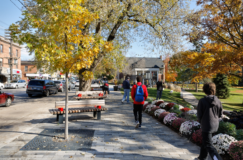 At Kew Gardens the City has long partnered with a local community floral group and a large band of neighbourhood volunteers to create celebrated displays. The new streetscape frontage increases space for these gardens by 200% and includes perennial and annual beds lining all new paths and the plaza. Planting beds contain ornamental grasses including Native Switch Grass and Prairie Dropseed. Shade-loving perennials beneath the mature trees include Virginia Bluebells and hardy Perennial Geranium.