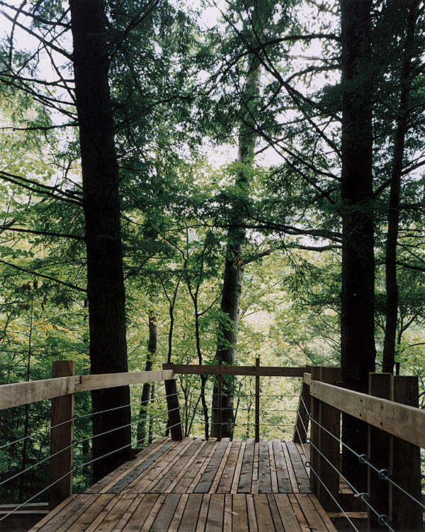 The master plan for this 85-acre private park creates an episodic journey that heightens the visitor’s experience of the existing landscape. The project is comprised of a series of architectural, sculptural, and landscape interventions along a network of paths through a varied natural landscape. These interventions include picnic areas, a woodshed, tower, mink cage garden, and belvedere that serve to enhance and point out the natural and man-made landscape features, as well as the sensuous aspects of the site by making you look and listen in particular ways – as if you are seeing them for the first time. The project also considers temporal aspects which allow for a continuous reading of the site’s history – the time it takes for growth or decay; seasonal changes; and the use of the remnants of its various human histories – pasture, gravel pit, mink farm and logging.