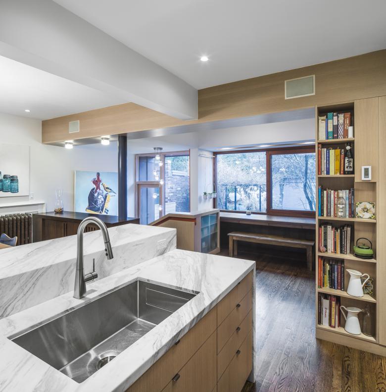 Nine years later, PLANT was hired to renovate the kitchen to finally connect to the rear addition work, and with new openings into the hall to bring the view and light deeper into the house.