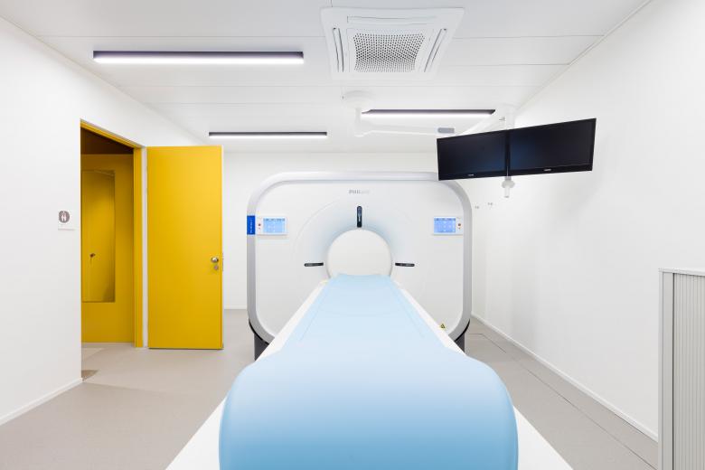 Bautechnisch stellte eine der grössten Herausforderungen die Planung der Radiologie dar. Zum einen, weil sie hinsichtlich der Strahlung gut abgeschirmt werden muss. Zum anderen, weil sie sich in einem statisch besonders beanspruchten Bereich des Stadions befindet: direkt unter der Tribüne.