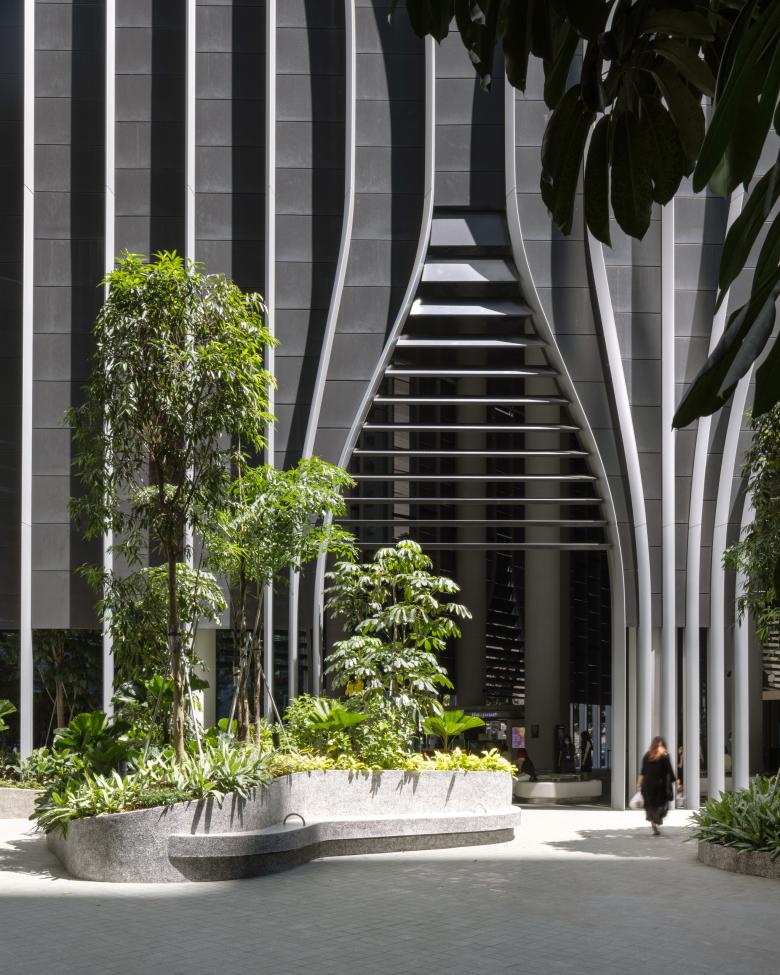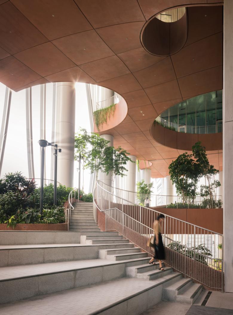 On street level, CapitaSpring restores a portion of the historically significant Market Street to the public realm by pedestrianizing the stretch and creating an expanded landscaped area which creates new green breathing space in the high-density CBD for the neighboring tenants and passersby.