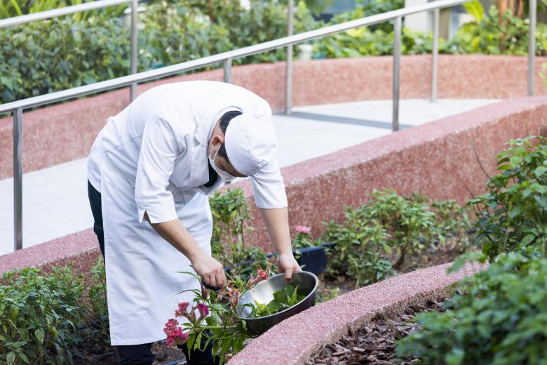 CapitaSpring’ s rooftop garden, with views of the city, is home to 1-Arden Food Forest. Currently, over 150 species of fruits, vegetables, herbs, and flowers, are grown across five thematic plots to supply the building’ s restaurants with fresh greens.