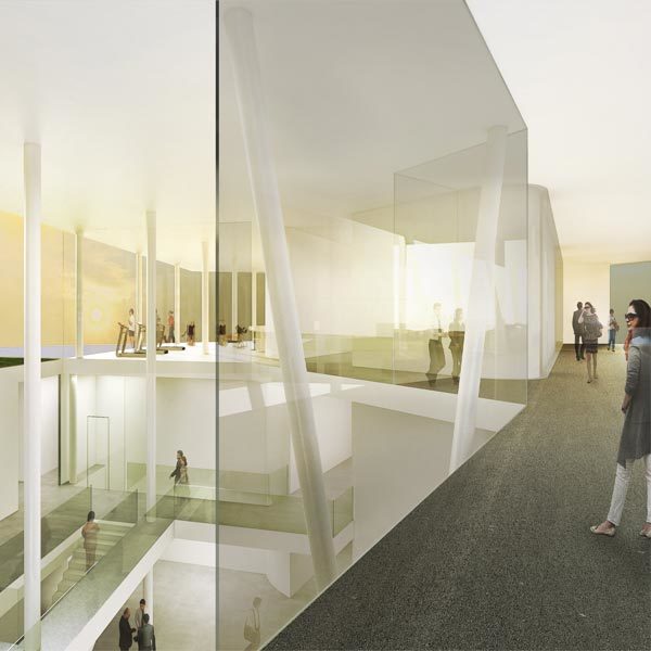 Öffentlichkeitswirksame Nutzungen wie Bürohauseingänge, Lobbys, Kinderbetreuungseinrichtungen und eine sowohl von Austro Control wie auch extern nutzbare Ausstellungs- und Veranstaltungshalle attraktivieren sowohl den Straßenraum wie auch das Wegesystem auf dem Sockel.