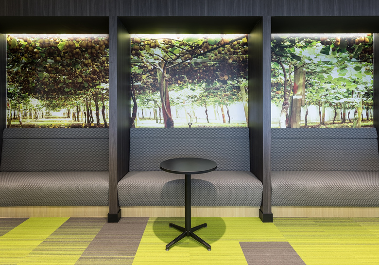 Zespri's fresh and bright brand colors are woven into the fabric and material choices throughout.