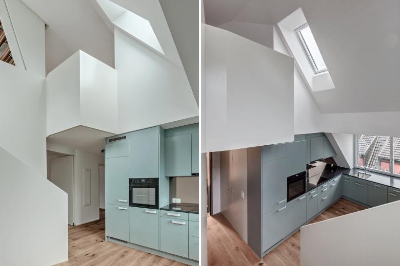 Zweigeschossiger Koch-Essraum im Dachgeschoss
