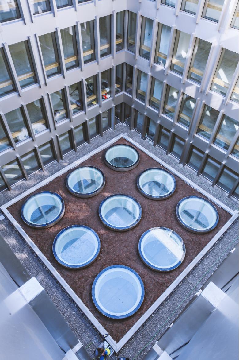 Das Geschäftshaus am General-Guisan-Quai wurde zwischen 1969 und 1973 vom Architekten Jacques Schader geplant und erstellt und befindet sich heute im Inventar der kunst- und kulturhistorischen Schutzobjekte von kommunaler Bedeutung. Ziel der Sanierung ist es, die wertvolle Architektur zu respektieren, zu bewahren und weiterzuentwickeln. Die Eingangshalle soll auch künftig das Zentrum des stolzen Geschäftshauses bilden. Als augenfälligste bauliche Massnahme ist die Rekonstruktion des mehrgeschossigen Atriums im Zentrum des offenen Erdgeschossgrundrisses hervorzuheben. Es erfolgt ein Rückbau des Gebäudes, bis auf die Primärkonstruktion. Denkmalgeschützte Elemente wie die Treppenhäuser, Bodenplatten in Foyer und Vorplatz sowie die Pflanzentröge werden sanft saniert. Eine Besonderheit des Gebäudes ist die im Schutzumfang enthaltene Rasterfassade aus Glas und eloxiertem Leichtmetall. Im Zuge der Sanierung wird in enger Zusammenarbeit mit der Denkmalpflege die Aussenverkleidung demontiert, von Spezialisten in den Werkstätten repariert, saniert und schliesslich wieder eingebaut. Das Gebäude soll die Zertifizierungen der Labels LEED Gold (LEEDv4 Core & Shell) und Minergie (Standard) erhalten.