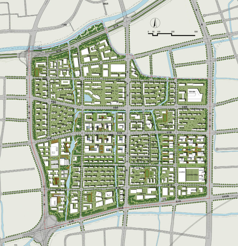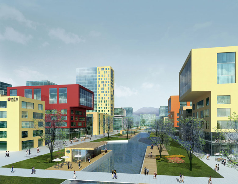 Großzügige Grünzonen, Parklandschaften mit gestalteten Wasserflächen sowie ein neues Fuss- und Radwegesystem verbinden die Zentren und die neuen Wohnanlagen für über 90.000 Menschen.