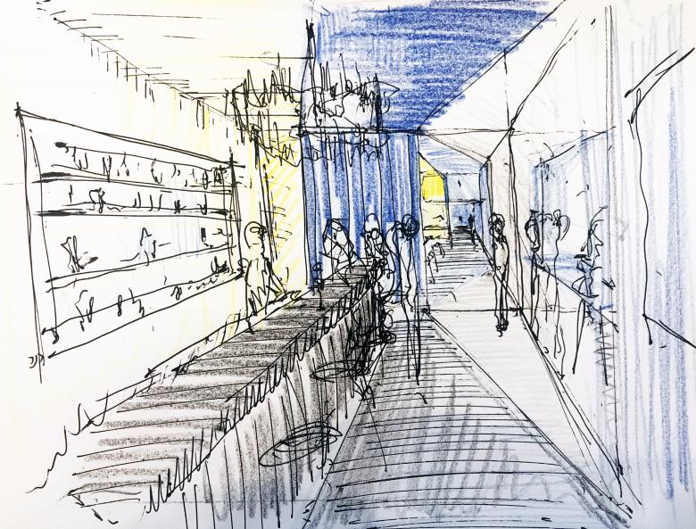Vorlage für das “Setting”, das sich viel mehr als gebaute Stimmung, denn als architektonischer Raum versteht, ist die Bildsprache des Malers Caspar David Friedrich – die Darstellung von Naturerscheinungen deren Wirklichkeit existent und dennoch nicht greifbar ist. Als Bar mit kulinarischem Angebot möchte das Restaurant ein Ort der Einkehr - im übertragenden Sinne - sein. Eine surreale Welt inmitten urbaner Realität. Ein Rückzugsort zu sich selbst.