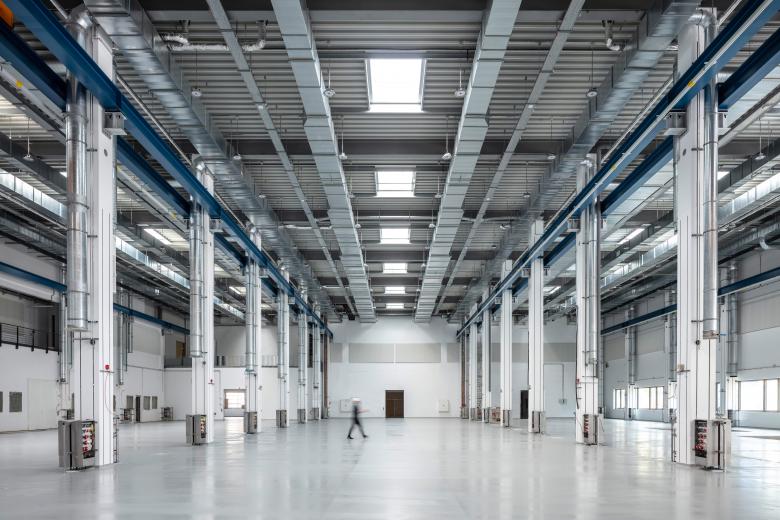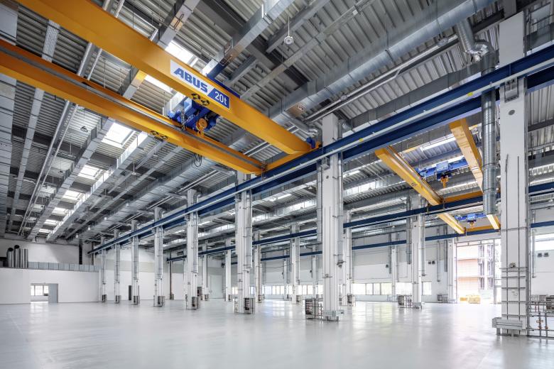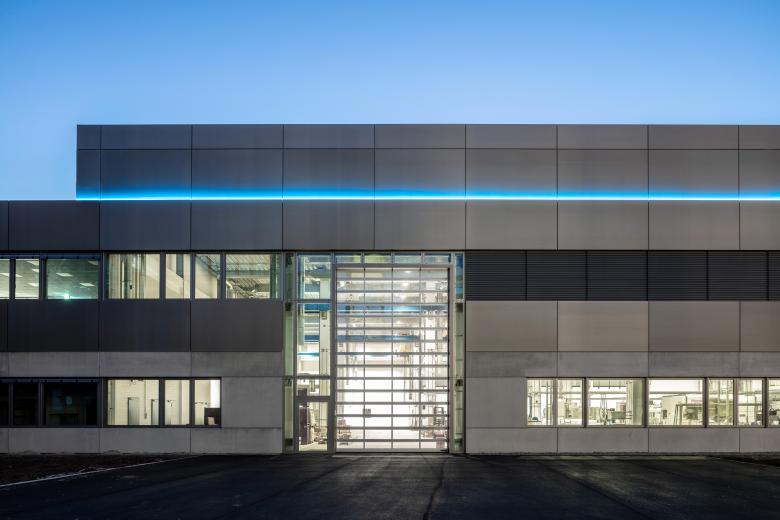 Die Gebäude-DNA© des 3.000 m² umfassenden Hallenbaus wurde hinsichtlich Geschosshöhe und Raster nutzungsflexibel angelegt. Drei zueinander offene Hallenschiffe verfügen jeweils über eine 20t-Kranbahn. Jedes Hallenschiff wird über einen unterirdischen Kanal mit technischen Medien versorgt. Dank Bauwerksdatenmodellierung (BIM) konnte vor der Bauausführung von der Tragkonstruktion bis zur Integration der technischen Ausrüstung ein digitaler Zwilling zur Prozessoptimierung (Termine, Kosten, Qualitäten) konzipiert werden.