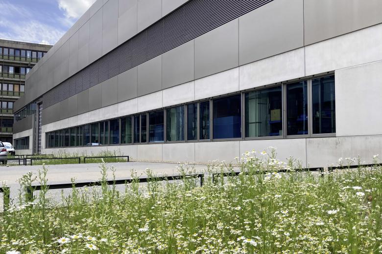 Aus einem Brandereignis resultierte ein Totalverlust einer Werkzeugmaschinenhalle der RWTH Aachen. Ein L-förmig anliegender Gebäudeteil blieb aufgrund der Trennung durch eine Brandwand erhalten. Durch die Wiedererrichtung des Hallenbaukörpers sowie der Sanierung des Bestandsbaus konnte der Grundstücksflächenverbrauch nahezu beibehalten werden.