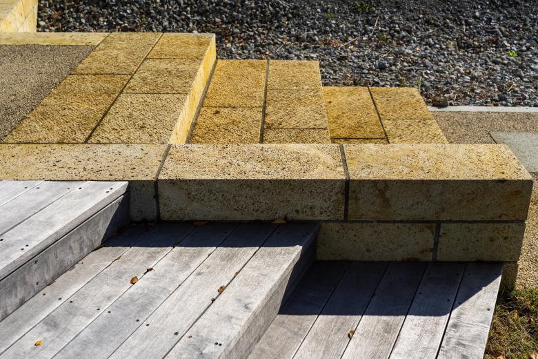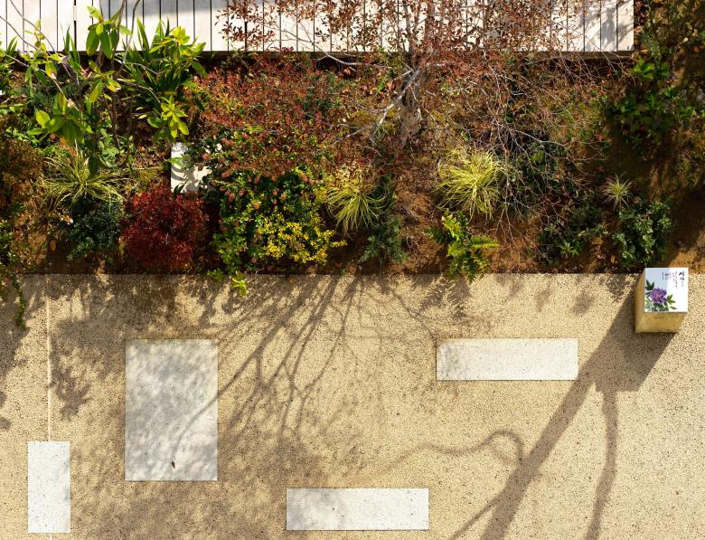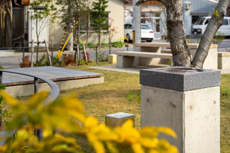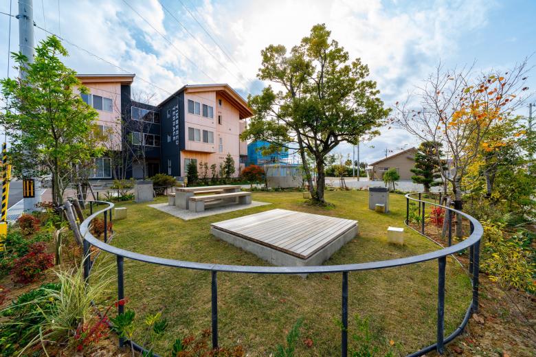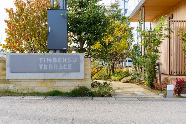 In the parks and the public space of the flats named "Timbered Terrace," we have installed a mortar for making rice cakes, decks for cherry blossom viewing, a barbecue terrace, and birdbaths. We have also created Kutani ware porcelain plates with designs to represent the twenty-four solar terms, and placed them among the grounds along with matching seasonal plants. In order to promote community building with a sense of unity, we have designed uniform gate pillars, placed signature trees, and laid down some rules on how the exterior walls are used and maintained.