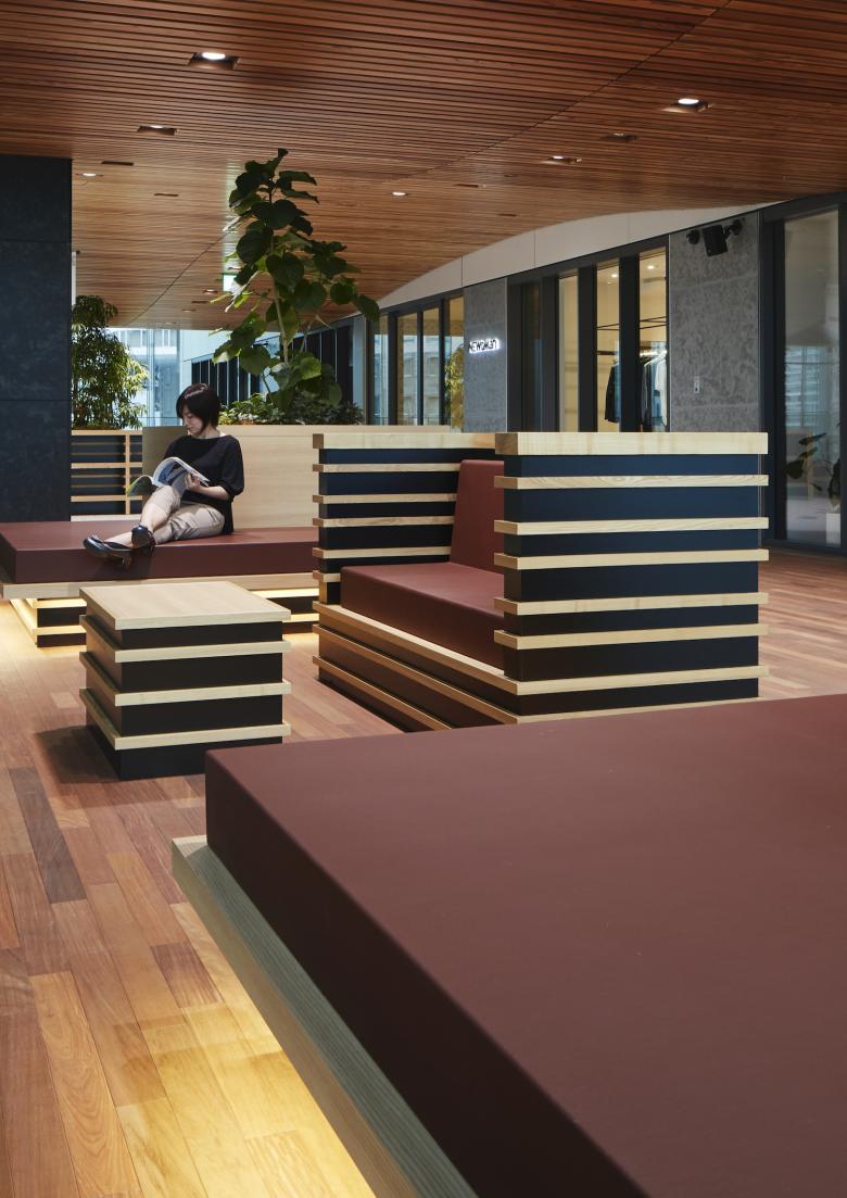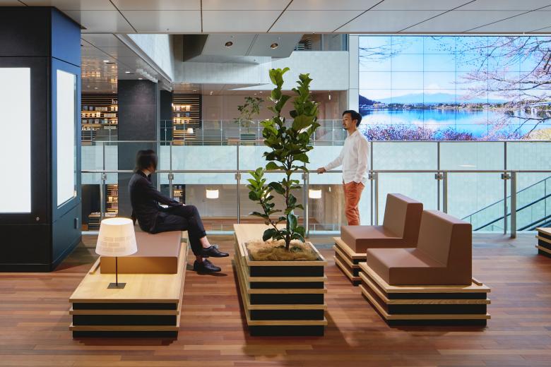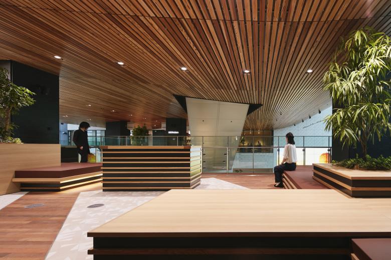 The “Atrium”, which serves as the entrance to the tower and the main access to JR Yokohama Station gates, is a four-story 55 meter high atrium, with a distinct feature inspired by a ship’s bottom made of natural cedar wood. The Atrium was designed to evolve around the concept of a "live station", where various "events" take place in locations such as the live stage, exhibition space, and lounging area. In order to show that these series of "events" over time are what made Yokohama what it is today, and to show how we could build a future, we have placed shelves and furniture along the walls of each floor to store and showcase the memories of Yokohama with a concept of creating the “Yokohama Archive.” We believe that the accumulation of memory pieces of Yokohama in the atrium space at the center of Yokohama Station, will lead to the station becoming a place for many people to learn about their own city. In extension to this idea, there is also a tourist information center in the atrium, where we were involved in the overall design, including the interior, the exhibits display, and the staff uniform, and we believe that we were able to convey the concept more clearly.