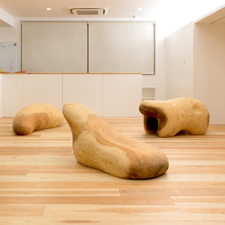 Objects carved like a dog, a cat, a cow, a bear... from an over 90-year old cedar log. They somehow look like living creatures. Children play with the toy as if it were a creature.