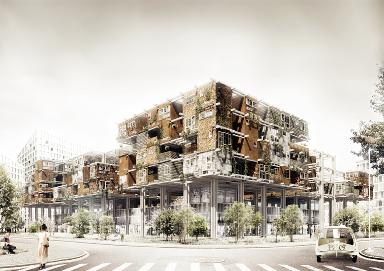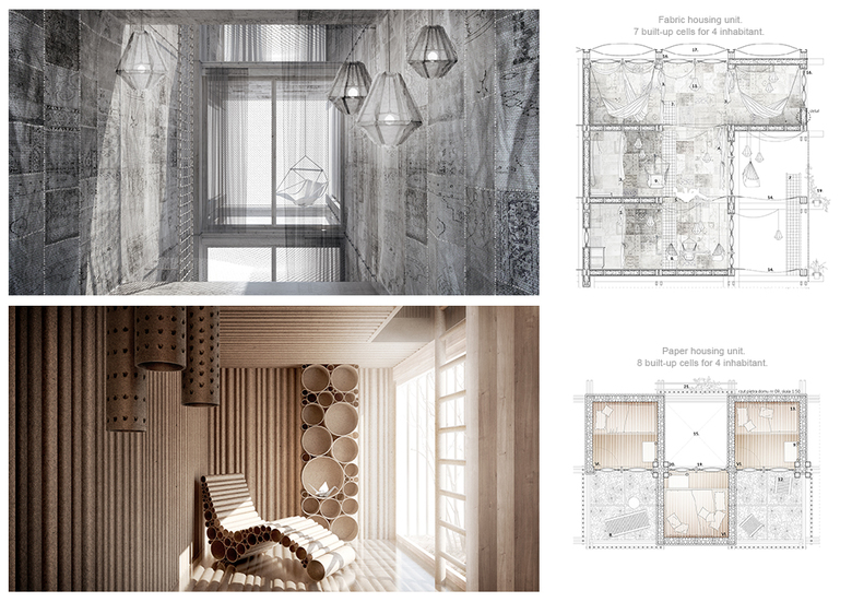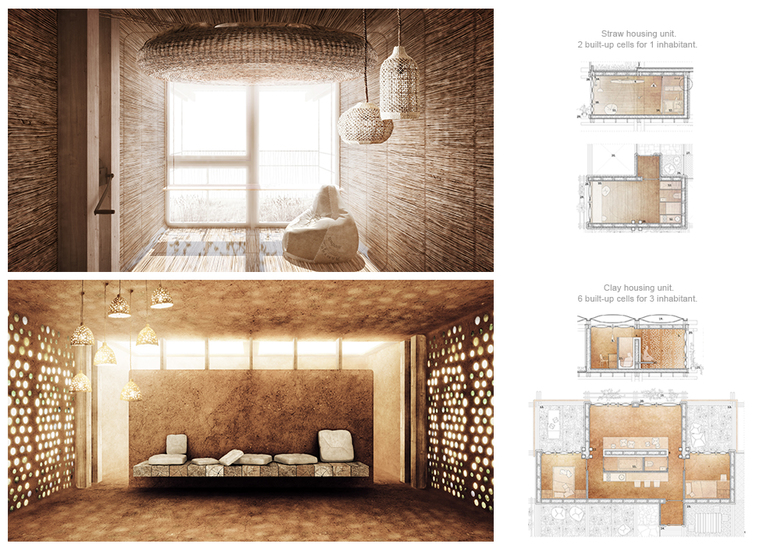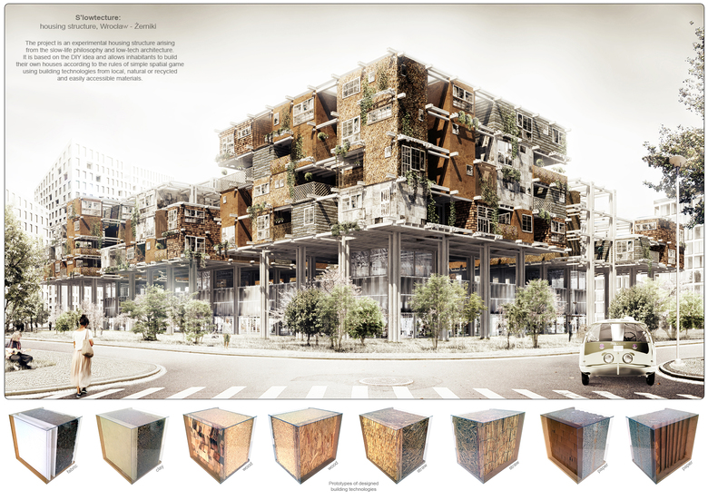 "The project is an experimental housing structure arising from the slow-life philosophy and low-tech architecture. It is based on the DIY idea and allows inhabitants to build their own houses according to the rules of simple spatial game using building technologies from local, natural or recycled and easily accessible materials."