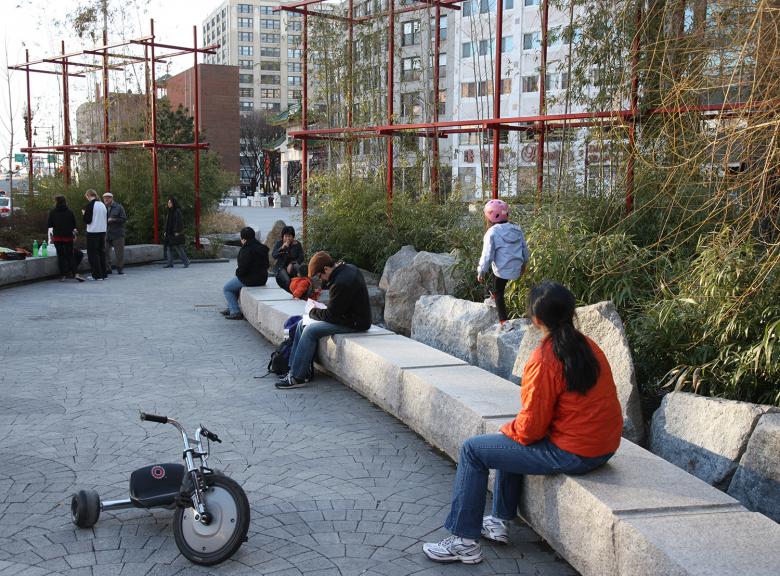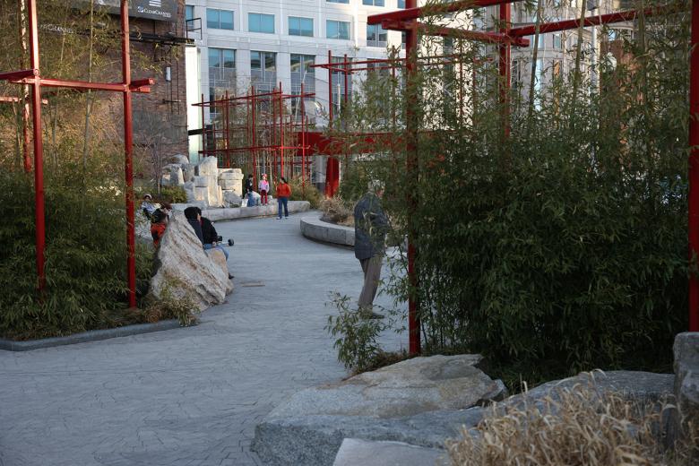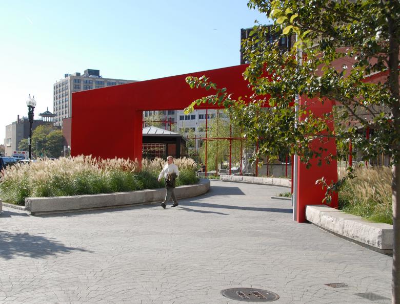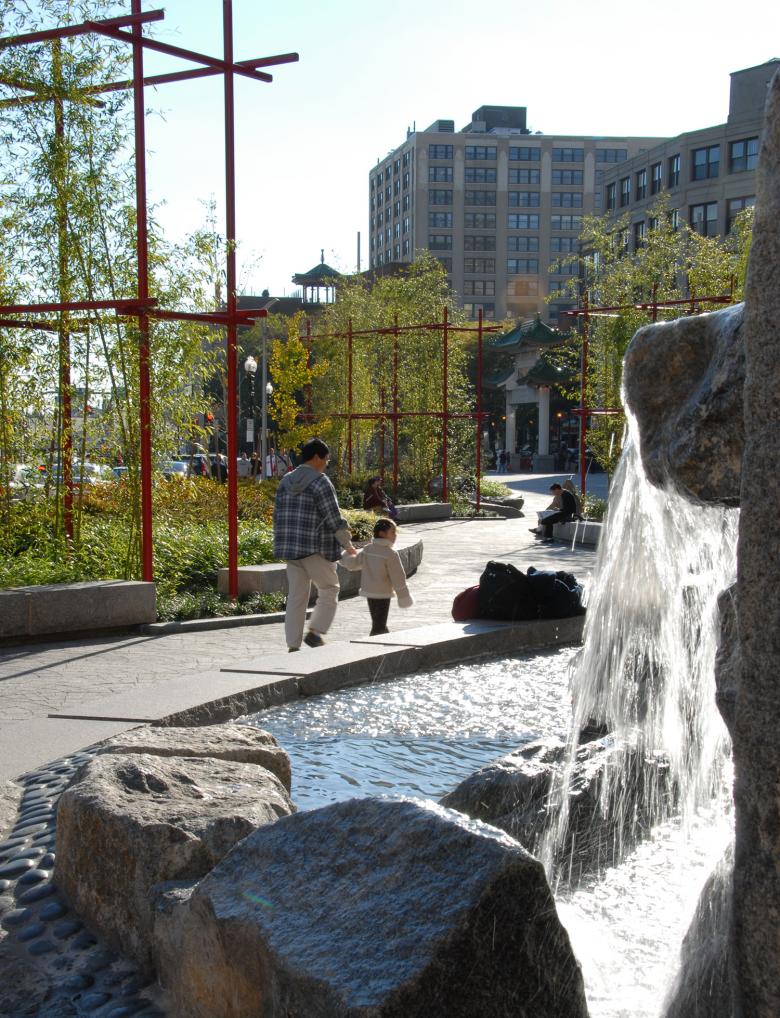 Turenscape, teamed with the local Boston-based firm, Carol R. Johnson Associates, proposed the Chinatown Park as a public space and performance theater.