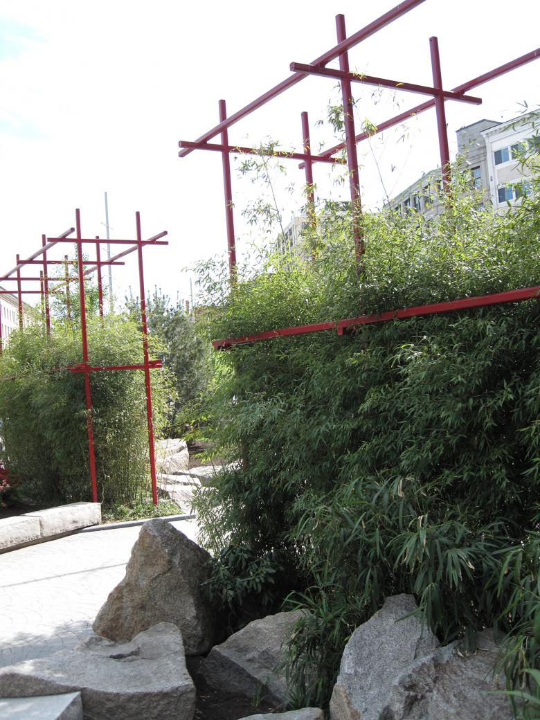 This concept was inspired by the linked concepts of passage and progression associated with the Asian immigrants to Boston and the active uses of this small China center. The programmatic vision calls for a layering of uses that are constantly changing. Our design is intended to frame and support these uses and activities. We envision a flexible park changing to accommodate a wide variety of daily, weekly, and seasonal needs.