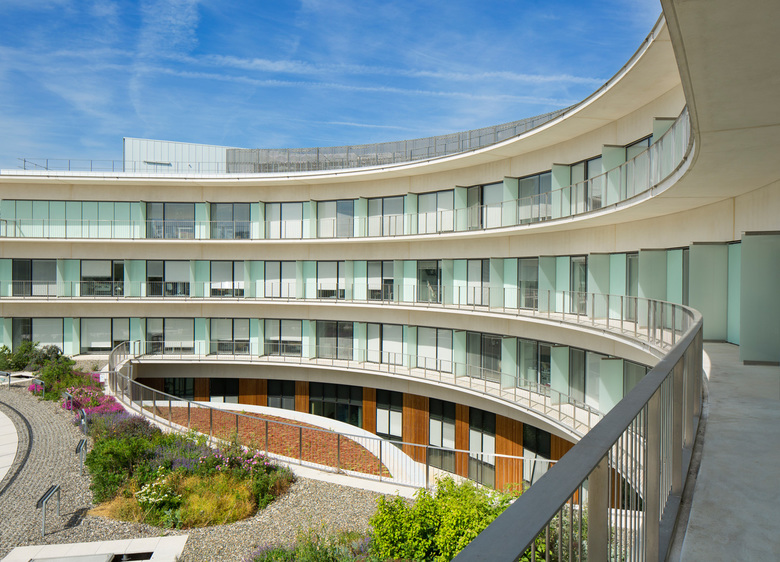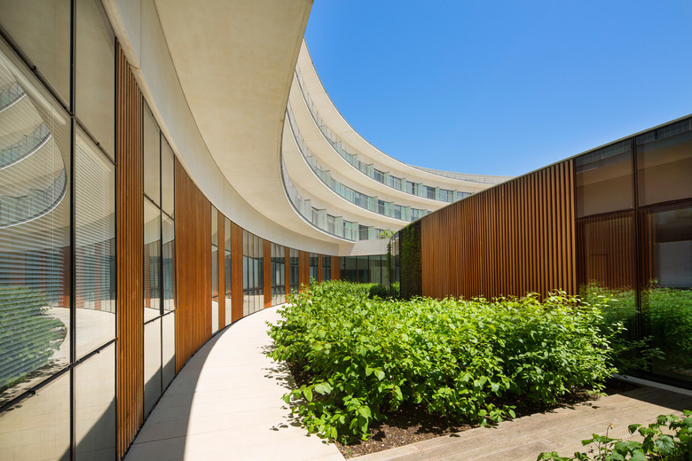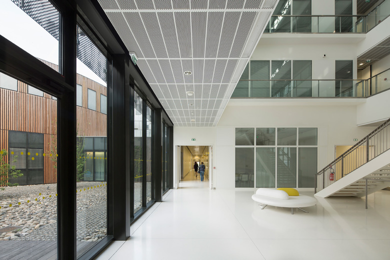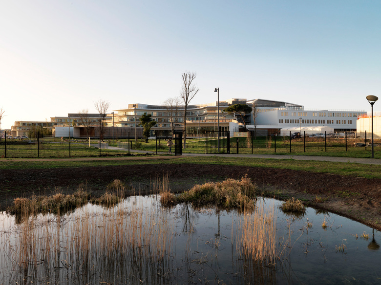 The Cancer University Institute adds a particular dimension to the Oncopole site: together with the public research laboratories, the private laboratories and all the other services and spaces of the Oncopole, the institute is the final piece in the cycle beginning with medical research and finishing with patient treatment. Thus, this institute provides a link between medical staff, patients, their families, and the public. Its design is in line with the spirit of the Canceropole. The institute’s first architectural principle is that it is conceived as a site and not only as a building: equal importance is attached to the landscape and to buildings.