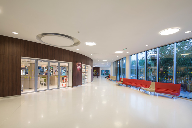 As for the Maison Commune, the aim was to bring people back together within the Langlade site. This part of the project is the symbol of individual and social interaction. This facility open to all offers wide a range of services for patients, their relatives and friends, and the medical staff. Several associations and an athletic center have already settled on the site.