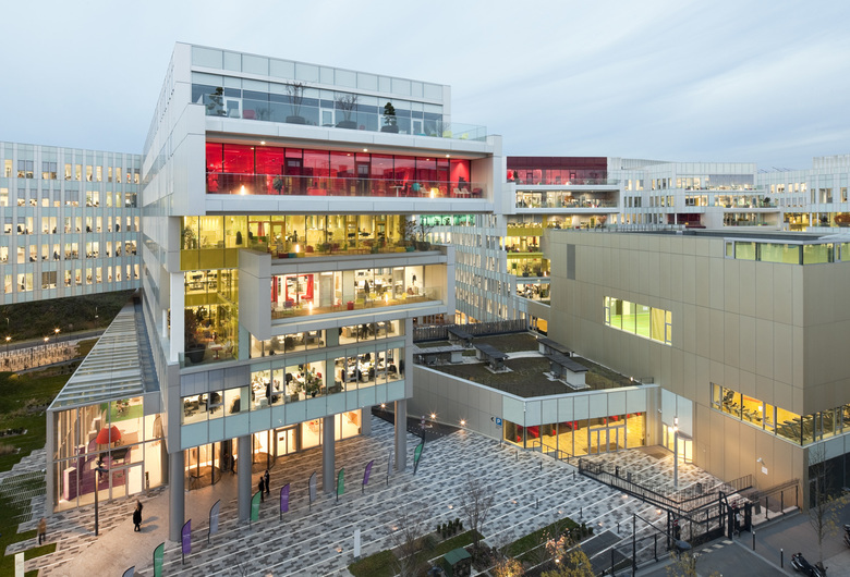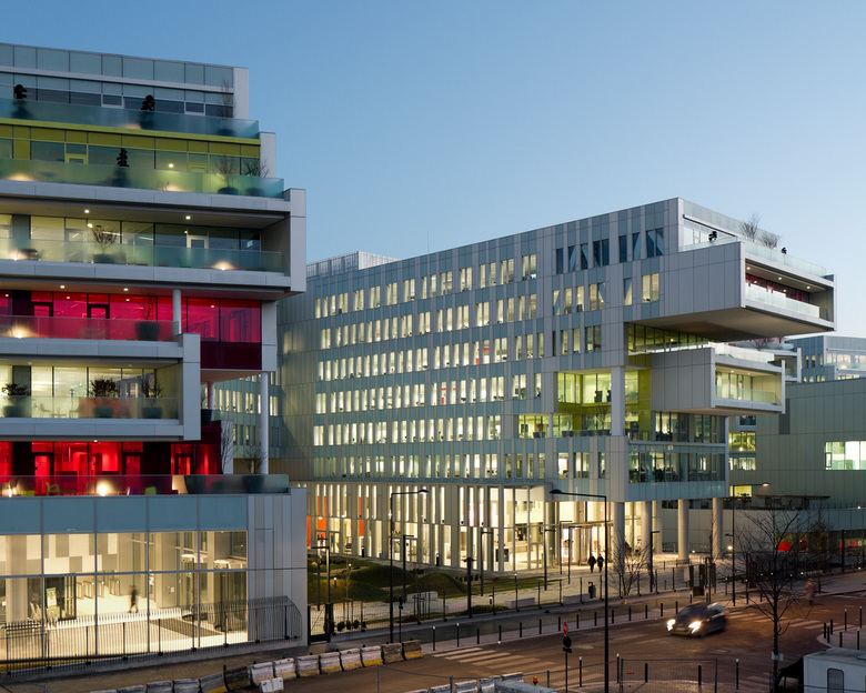 Jean-Paul Viguier et Associés bring together the employees of SFR, one of the largest French telecommunication companies, in a brand new 130 000m² campus in Saint Denis. The project is based on the metaphor of the tree, creating an element that is in permanent growth and constantly adapts to its surroundings. From a large trunk grow out several branches opening on terraces and a vast garden extending to the upper levels.