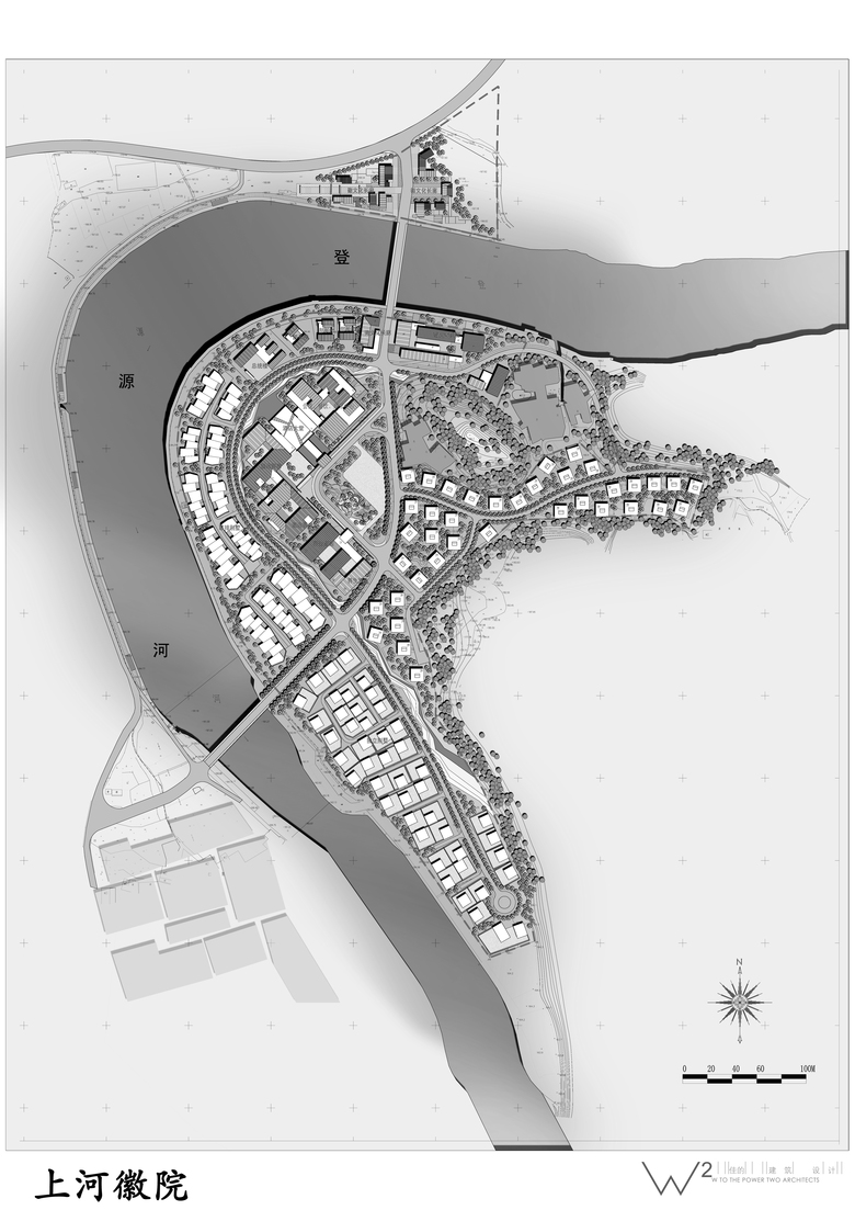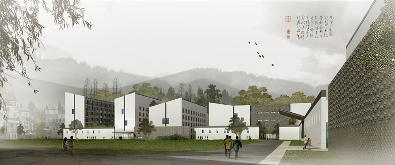 The planning and design of the courtyard appropriately corresponds to its name, and fluently combines traditional architectural styles of Anhui Province with modern abstract trends. The courtyards are subsequently stationed, incorporating grey tiles placed over white walls. The project includes hotels, commercial districts and private housing.