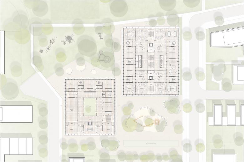 Die Kindertagesstätte ist für die Betreuung von ca. 160 Kindern in 3 Gruppen U3 sowie 5 Gruppen Ü3 sowie der Bereitstellung multifunktionaler Räumlichkeiten für die Integration der Angebote des Familienzentrums geplant. Getrennte Nutzbarkeit und Zugänglichkeit (inkl. eines separaten Eingangs) sind unumgänglich. Beabsichtigte Synergien mit dem Familienzentrum erfordern spezifische Lösungen bezüglich der Anordnung der Räumlichkeiten.