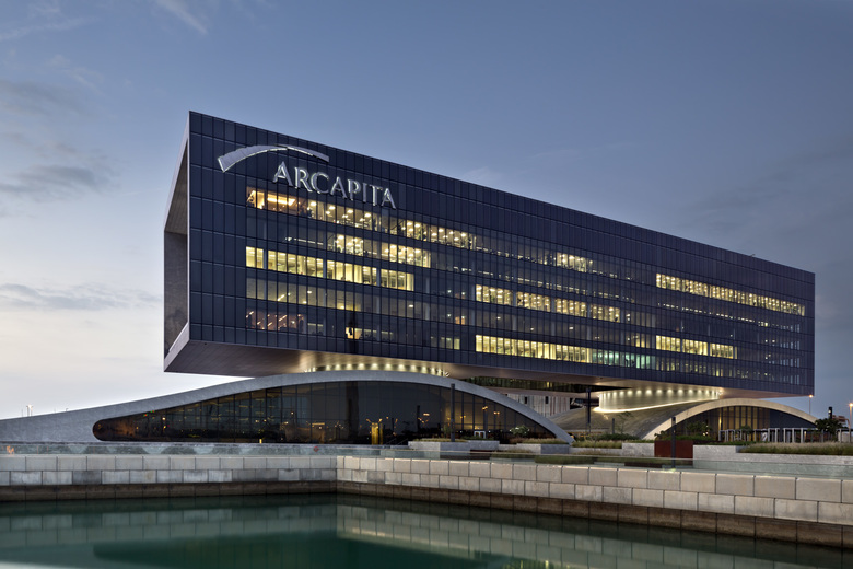 Die Hauptverwaltung der Firma Arcapita ist ein Herzstück der stadtplanerischen Neugestaltung von Bahrain Bay. Das Hauptgebäude ist ein kubischer Körper, der 15 m über dem Eingangsbereich schwebt. Der auf zwei Kernen ruhende Baukörper ist 135 m lang und 40 m breit. Die Gesamthöhe des Gebäudes beträgt ca. 25 m. Zwischen Boden und kubischem Körper befindet sich eine wellenförmige Betonstruktur, die den Eingangsbereich des Gebäudes bildet.