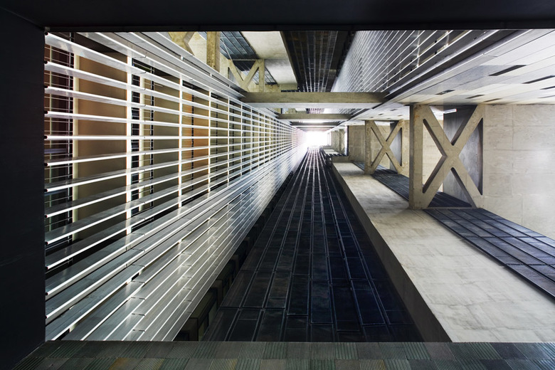 These ribs are lit at night, turning the large building into an elegant, vertical screen. The sky gardens are also highlighted with lighting. The orderly, elegant building makes an attractive addition to the chaotic skyline of Bangkok. With its openings to the sky behind, planted facades, balconies and sky gardens, the Met weaves nature into the concrete jungle of central Bangkok.