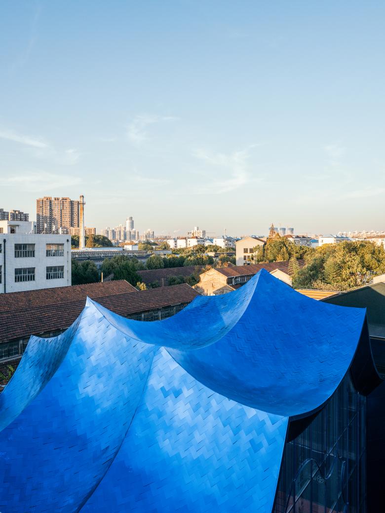The design is simple, but life is not easy. Our moods fluctuate with the results of wives’ medical reports, from nervous, anxious to relief, then back to the next cycle. Life is always in a state of uncertainty. In comparison, my wife appears calm and composed. I told the project manager, MU Zhilin, to use metal, allowing this soft building to be covered by a shiny armor. Special structure and customized curtain wall consultant, FLO suggested arranging aluminum panels in a pattern of fishskin to conform to the undulating shape. At that moment, a scene from a young age came to my mind ” She stood up from the pool, covered in glistening water droplets, bathed in the sun, as if wearing sparkling scales. He wanted to catch her, but she slipped away.” Then I said to FLO, “Let’s do this.”
