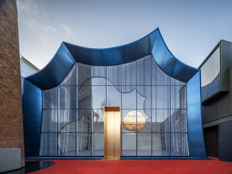 Since life is full of unpredictability, I painted the entire interior in white. At the same time, uplifting words are needed to encourage me, and it is the golden gate represents those wonderful memories, while the orange circular window is a blessing. When the curator HE Genxiang shared the photos on social media, someone commented, “Waves.” I said, “Wave-like Hills.” This is the birth of Klein Blue Hills, straightly inspired by life. Under the undulating Klein blue hills, there’s our “swaying world”.