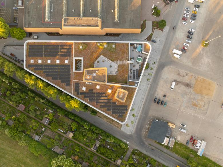 The Main Bad is impressive not only architecturally, but also ecologically. The compact, three-story cubature contributes to the building's energy efficiency, as it reduces the building envelope in relation to the volume, thereby minimizing heat loss. Openings and facade surfaces are optimized for daylight utilization, energy efficiency, and thermal performance. Skylights allow natural light to penetrate deep into the building, improving the quality of the environment and reducing the need for artificial lighting; at the same time, they enable passive solar energy gains.