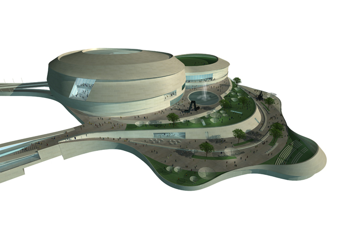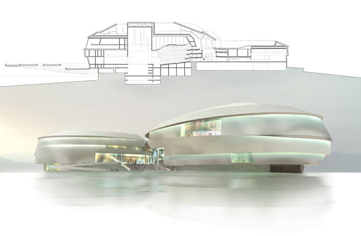 Translated into a series of landscapes that foreground the public’s experience of the water, literal and phenomenal infrastructural bands are deployed to accommodate activities such as shopping, recreation, arts programming, beach access, leisure, dining, and various maritime functions. The creation of these terrains and their integral relationship to the architecture of the site, serves to reference the adjacent mountainous geography, acknowledge the reclaimed nature of the constructed island, reinforce the free and open access to the coastal edge and extend the inherent diurnal nature of performing arts complexes towards full time use. In addition, the surrogate terrain serves as a future buffer to potential storm surges mediating the space between the sea and the opera complex.