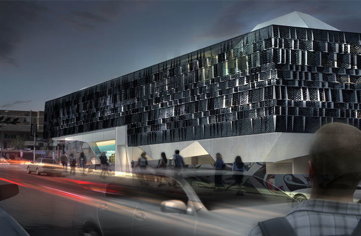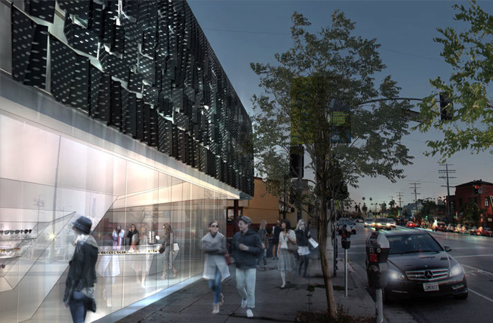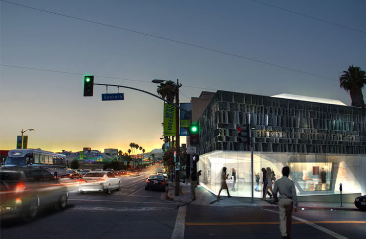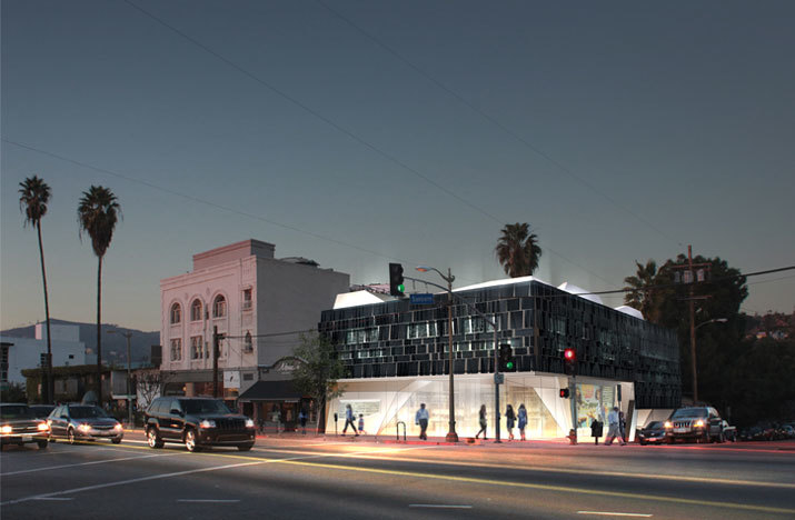 The client’s project brief focused on maximizing the leasable square footage of the site, although specific programmatic requirements were not given. Our solution focused on the creation of a hybrid building that provides the client’s desired floor area, contributes to the increasingly vibrant community culture of this area of Sunset Boulevard, as well as evoking the site’s history through the contoured program volumes and the revealing tectonic of the building’s skin.