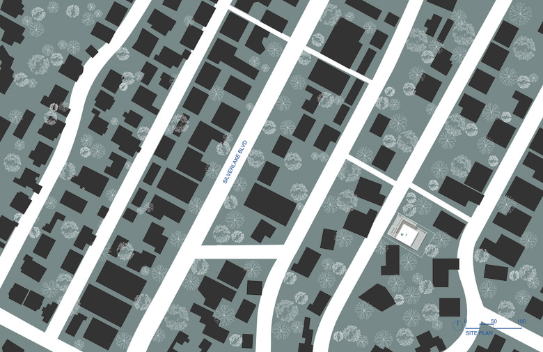 The project site for this 2,100 sf residence is a 3,750 sf ascending northwesterly facing parcel with panoramic views towards Los Angeles’ Silver Lake Hills and Reservoir. The residence is situated adjacent to multiple significant mid-century modern homes, including William Kesling’s Vanderpool and Wilson Houses, and the Allyn Morris cantilevered duplex. Due to the adjacency of these neighboring properties and the lack of natural open space available as a result of the limited size and extreme slope of the site, a series of plan shifts were generated to create numerous exterior living spaces within the volume of the residence.