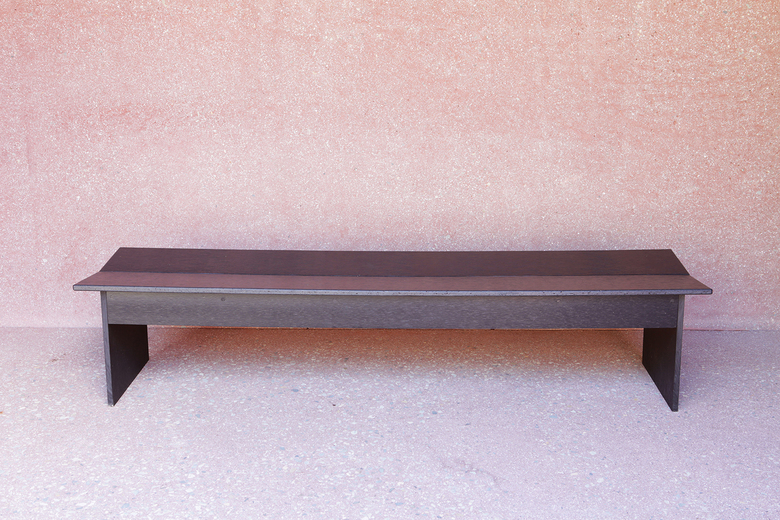 素材として車のバンパーやペットボトルのキャップなどの廃プラスチックを利用した再生プラスチック製のパネル、「エコマパネル」を使用した。座面は中心に向かって勾配を付けることで座面の雨水を中心から地面へと流すようにすると同時に、その勾配によってフィット感を与え、快適に座れるようにしました。