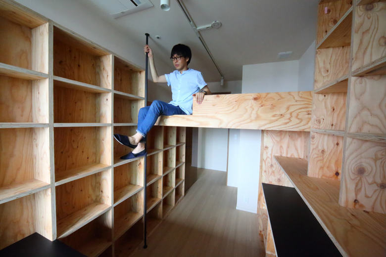 It is composed of 2 bedrooms, 1 children room and living-dining room. As living-dining room has a narrow L-shape plan, we partially raised floor with storage underneath and set lift-up party dining table at the center of the floor for home party. Children room was planned right next to living-dining. We made a large box furniture to improve usage of children space by combining bed, bookshelves, and desk together. The bottom of the furniture is the desk and bookshelves, the top part is the bed and the play area.