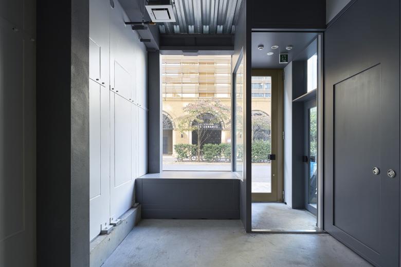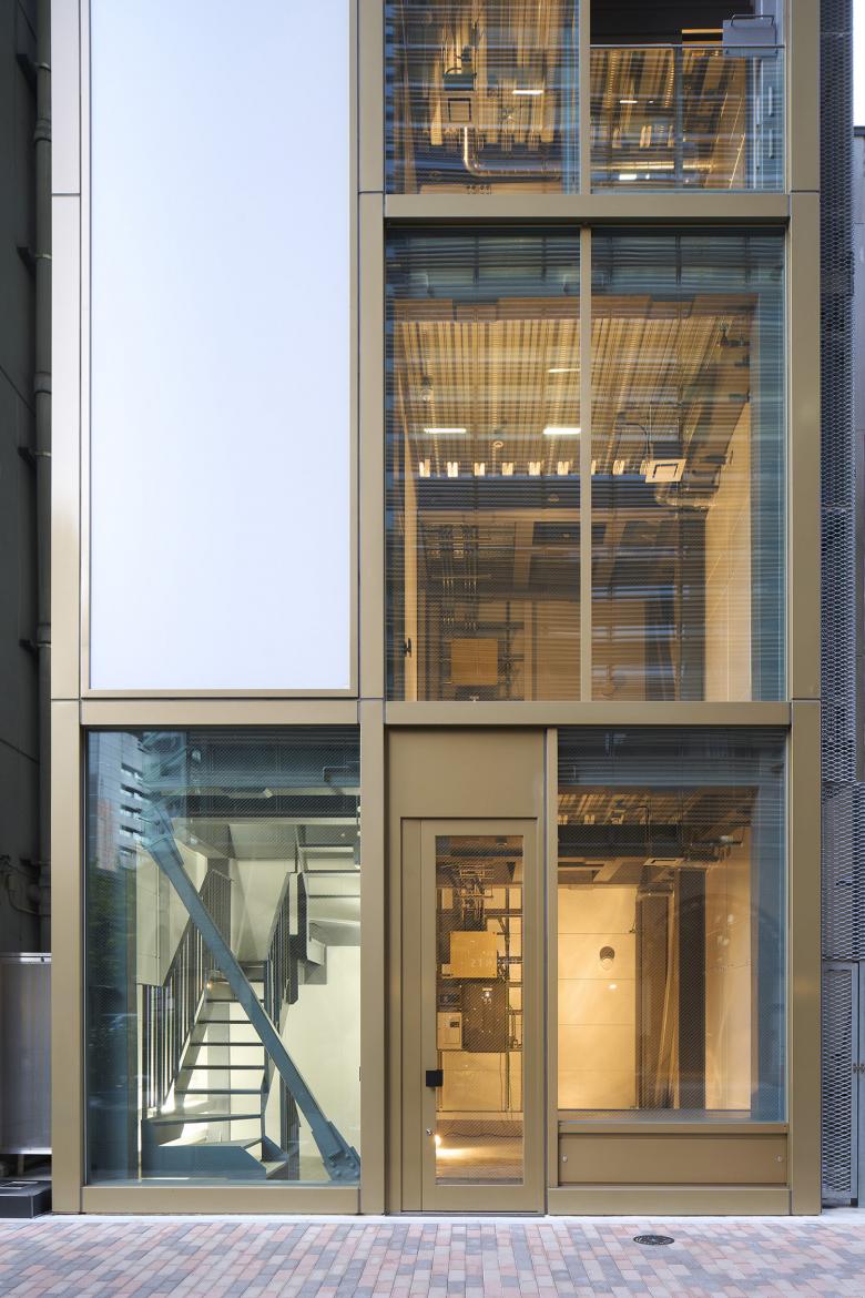 Tokyo’s famed Ginza commercial district commands the highest property values in Japan. Although the lot to be developed was only 6.27 metres wide and 5.46 metres deep, the relatively high value led to a detailed review of options to maximize rental income. A building three levels above ground is the limit for a staircase-only option, which in turn limits leasing and rent payments to three floors. More levels necessitate an elevator. The front-to-back alignment of staircase and lift and separate leasing of each floor, however, require a common corridor that leaves the ground floor with hardly any space for lease. A lift and staircase across the width of the façade would eliminate the common corridor requirement, although the street view from the inside would be blocked, and an escape balcony required on the third and higher floors could not be accommodated. The conclusion reached for this property was to master-lease a building with five floors above ground and a basement. The design incorporated the front-to-back alignment of staircase and elevator, and considered an upscale restaurant, jewelry store, or watch store as the target tenant.