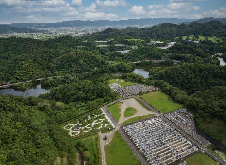 The tree burial site at Goshikidai Memorial Park. The first phase of construction, completed in 2021, included 274 graves, the second phase, completed in 2022, included 105 graves, and the third phase, completed in 2023, includes 600 graves.