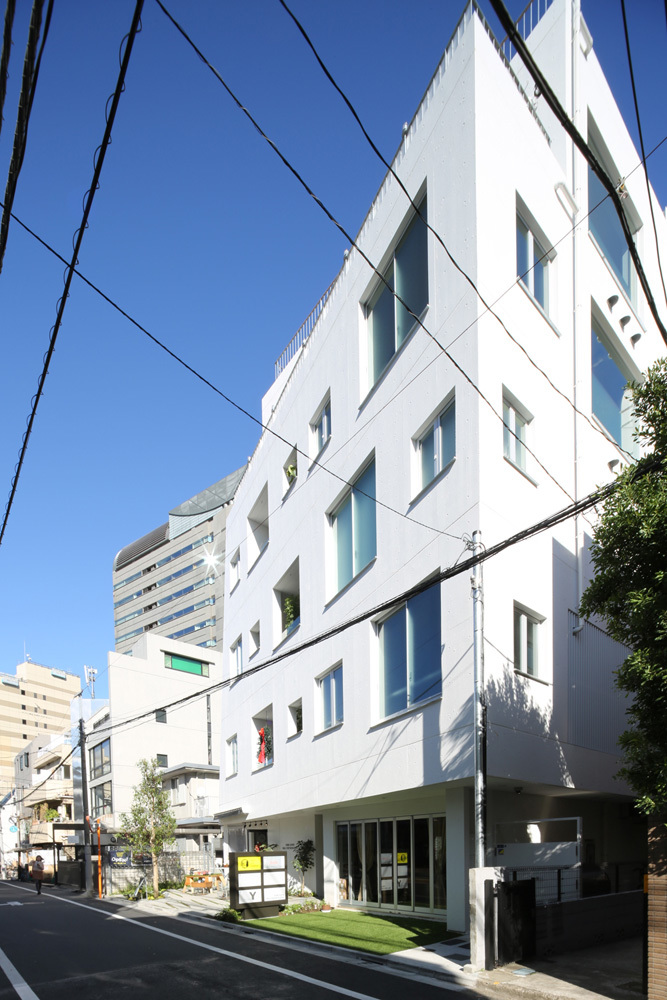Hill Top Building has an oblique facade in regard to the street, which is a method that was used also for the Terrace building. This set-back method of the two structures has produced a more welcoming entry to the site when approached from the Ebisu station. It has also created an open space for the tenants and the neighbors to hold events and activities.
