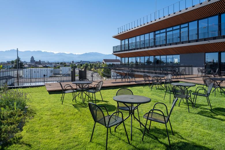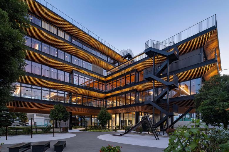 Headquartered in the City of Toyama, Juzen Chemical Corporation is a contract manufacturer of active pharmaceutical ingredients. Imbuing the culture and natural beauty of Toyama among its manufacturing complex, the company’s new head office was designed to present an indoor ambiance like a relaxing wooded area, which could additionally provide employees with space for respite.