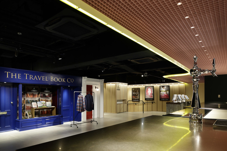 The refreshment counter for purchasing drinks and snacks, small bookstore, restrooms, and smoking area were finished to look like a movie scene or set. The walls behind each scene were framed plywood, a striking reminder that movie scenes are faked and merely surrounded by imaginary fixtures. The ambience is like a movie studio. The famed exhibits tied to the featured movies at Musashino-kan Shinjuku are now installed like movie sets.