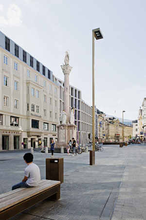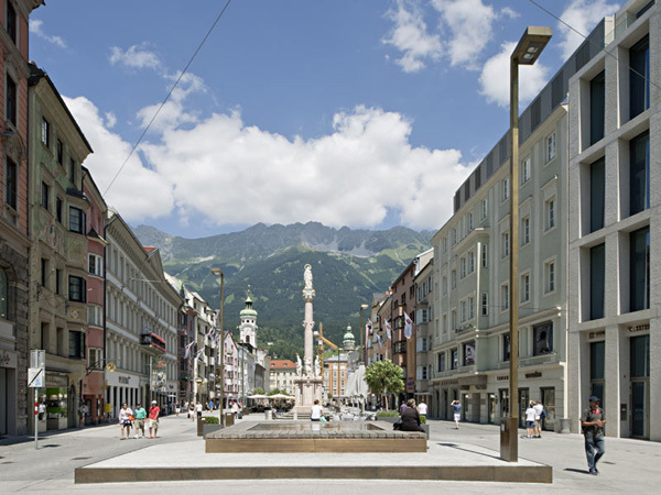 A redesigning of Maria-Theresien-Straße that does justice to the significance that the street has in the townscape of Innsbruck: the goal was to create an urban site with a rich atmosphere that invites strolling, hanging out, and meeting people.