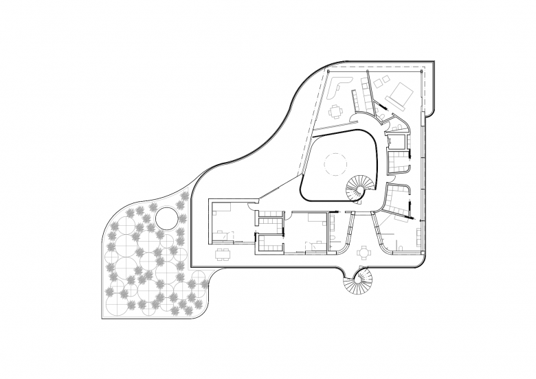 Das zu bebauende Grundstück befindet sich an bester Lage am Siedlungsrand des Rorschacher-berger Weilers Käseren. Während im Osten die geschlossene Fassade vor unerwünschten Ein- und Ausblicken schützt, öffnet sich dahinter die lichtdurchflutete Villa mit einer geschwungenen, der hügeligen Landschaft und dem Wasser vom Bodensee angeglichenen dynamische Ausweitung zur unvergleichlichen Seesicht, zur Nachmittags- und zur Abendsonne. Hangseitig strömt von Süden viel Licht durch das maximal verglaste Wohngebäude. Die grosszügige Seeterrasse, mit dem an Rand gesetzten Unendlichkeitsbecken, verlegt das Anwesen praktisch direkt ans Bodenseeufer.