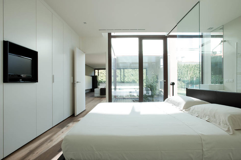 The site is located at a point between the square and the church of a small village in the Po Valley. The new building develops around a small inner courtyard. The front facing the street has no openings apart from the main entrance. Four metres high, it underlines the idea of the threshold conceived as an element of transit and delimitation that separates an outer world, without rules or qualities, from a controlled artificial one. The walls of the building have no domestic openings, establishing a selective relationship with the surroundings and providing a visual rapport with the only side with vegetation, to the east of the building, and with the inner courtyard.