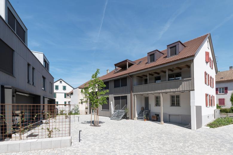 An der Baslerstrasse, im historischen Dorfkern von Bottmingen, entsteht ein familienfreundliches Wohnensemble. Zwischen Innenhof und Strasse steht das komplett sanierte und angebaute Bauernhaus mit 7 Mietwohnungen. Im Innenhof befindet sich das frei stehende Hinterhaus, bestehend aus 3 Reiheneinfamilienhäusern.