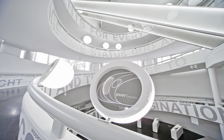 Within the context of an overall renovation of the BMW corporate headquarters, the look of the BMW museum is also being re-defined. The existing architectural form of the famous “Bowl” remains while the adjoining building elements are integrated for the museum’s utilization. The new concept is based on theme-specific spaces made accessible via ramps as a symbol for mobility and movement. These ramps connect the locations of the exhibition and experiences. The idea of the original museum architecture – streets and places in urban space - finds its continuation in the form of an urban spatial experience of streets and buildings. The multi-media enhanced exhibition architecture creates an impressive framework for the exhibits.