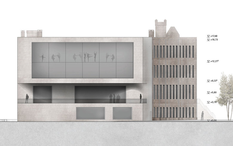 The LernWerk Bocholt is conceived as an open and inviting house for culture and education. The original shape of the historic spinning mill is restored and the building is gently expanded by an annexe which allows rooms without pillars. In the existing building, all historic traces are sustained; the character of the large spinning halls is also preserved. The first floor becomes the central distributor. It connects the town to the river's side of the building and can be reached via a generous external staircase with a high amenity value. A terrace with a view onto the river forms the counterpart to the newly set town square.