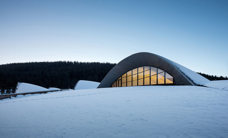 Courchevel, located in the middle of the French Alps, combines several municipalities and spans multiple plateaus of varying altitudes. The new aquatic centre is placed between Courchevel 1650 and Courchevel 1850. This platform, anked by two mountains, faces a valley on one side and an exceptional alpine panorama on the other.
