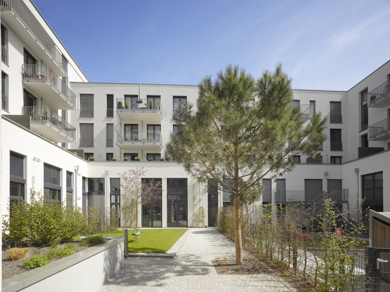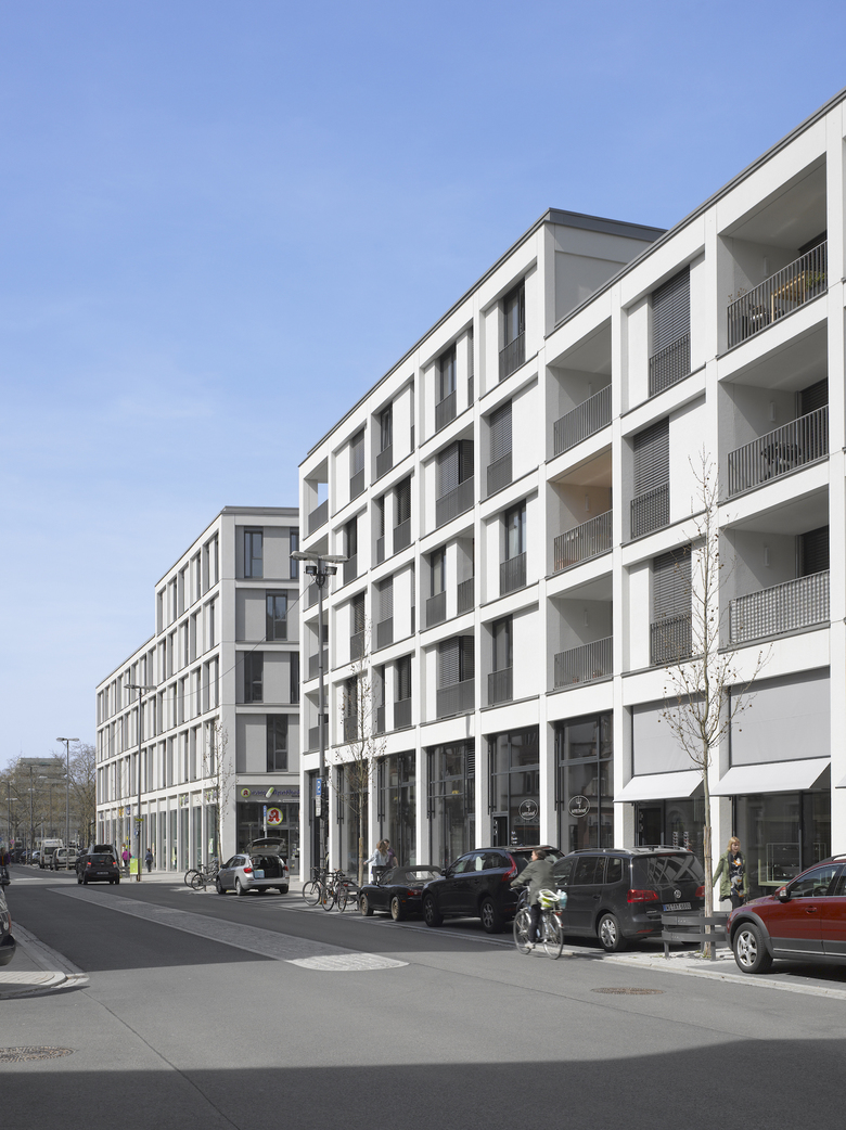 The city blocks MK2 and MK3, standing next to each other, form an important part of the urban restructuring along Kurfürstenanlage road. Architectural themes are the elaborate design of an attractive connection from the park in the north to Bahnhofstraße in the south, as well as a clearly structured and flexible look of both blocks. In order to achieve this, the façades consist of architectural concrete sandwich panels, arranged in varied compositions. The spaces on the first floor of KurfürstenCarré are designed for retail units and a children’s day care center, with connection to the inner courtyard, the upper stories hold apartments of different sizes and layouts.